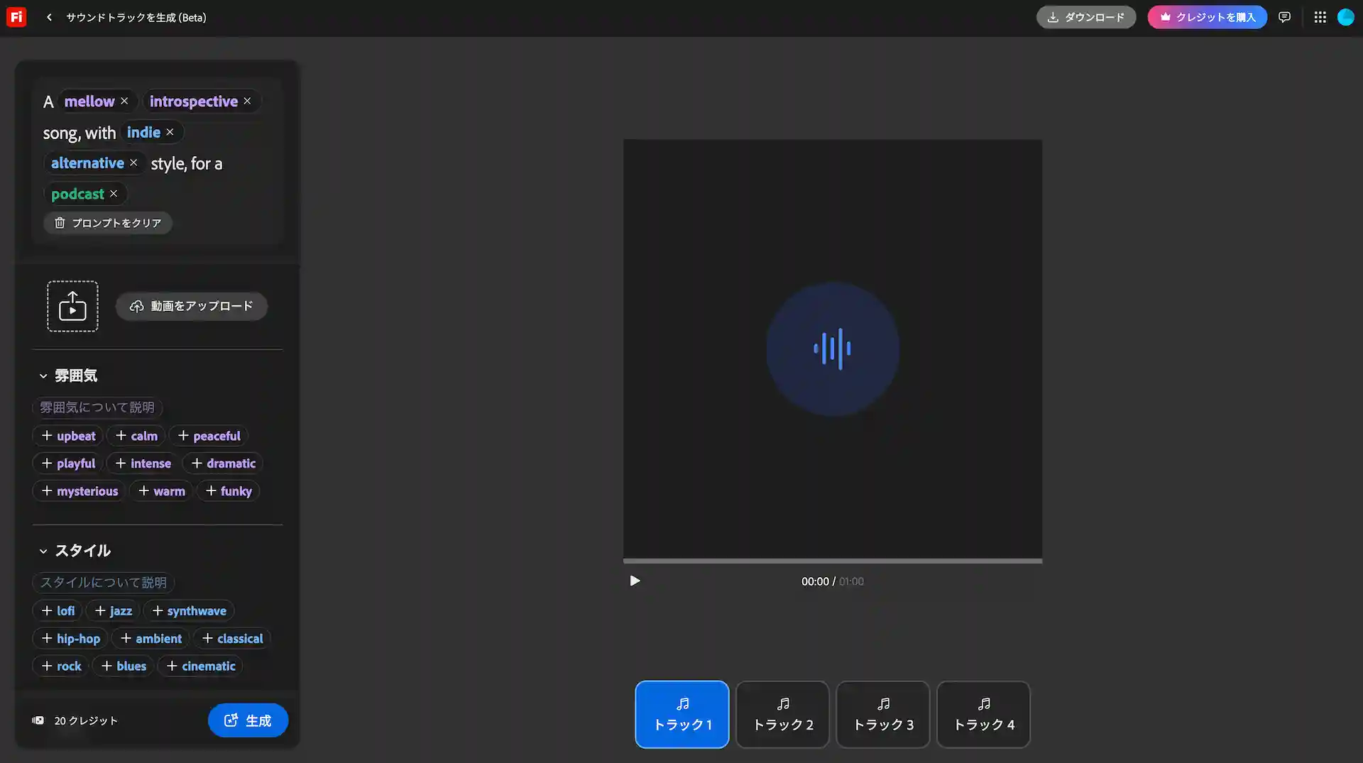 Adobe は 10月28日(火)、新しく サウンドトラックを生成 をリリースした。