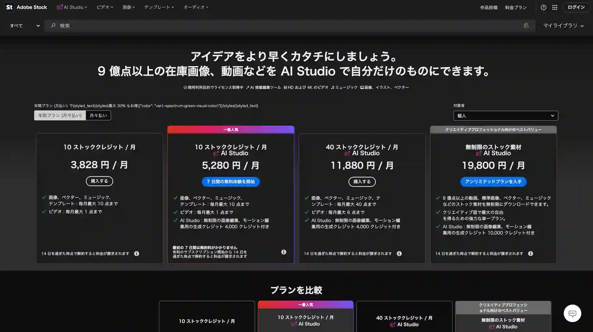Adobe Stock の料金プランが刷新 AI Studio の生成クレジットを含む仕様に