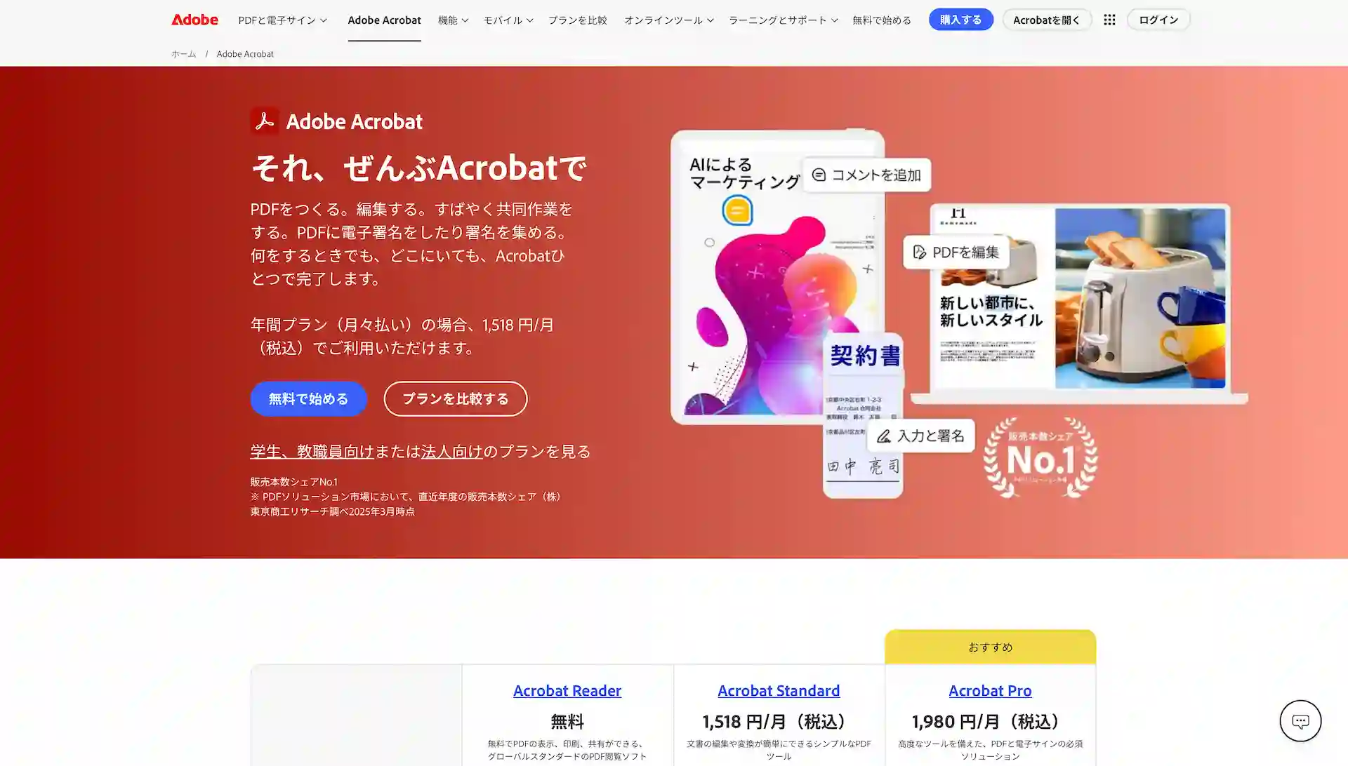 | Acrobat Standard 単体プラン | ¥1,518/月(税込) | |