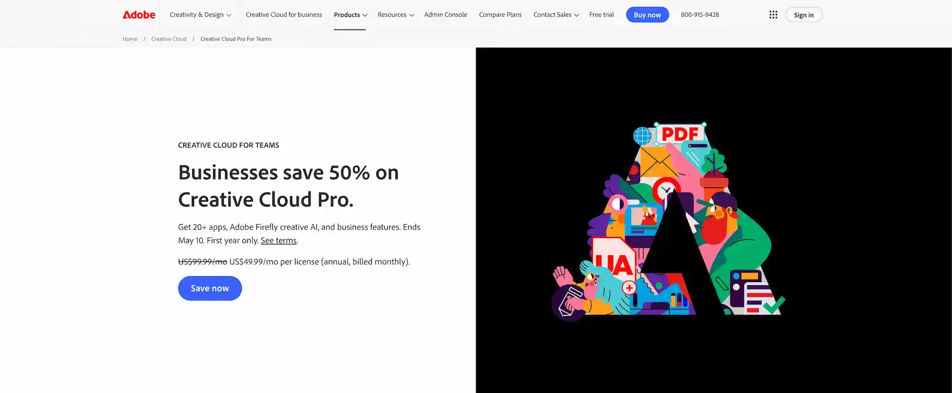 For a Limited Time, Get 50% Off Adobe Creative Cloud Pro for Teams for the first 12 months.